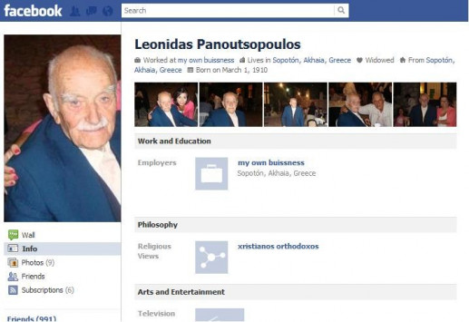 O γηραιότερος χρήστης του Facebook φαίνεται πως είναι ο Λεωνίδας Πανουτσόπουλος.